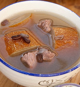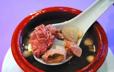 2、做法:将配料放入汤煲中,放约2汤碗水,煲浓。