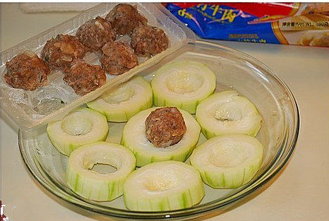 材料:牛肉丸两个,节瓜片几块