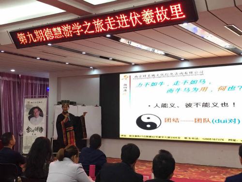 灵雨国学汇馆馆长,中华周易风水与姓名文化研究协会会长,国际注册高级风水相学师,南京著名易经风水讲座专家灵雨老师,于2018年10月20日——23日应邀在河南羲皇故都,天下第一陵——太昊伏羲陵,进行游学,并讲授易经文化,开启华夏文明寻源之旅。